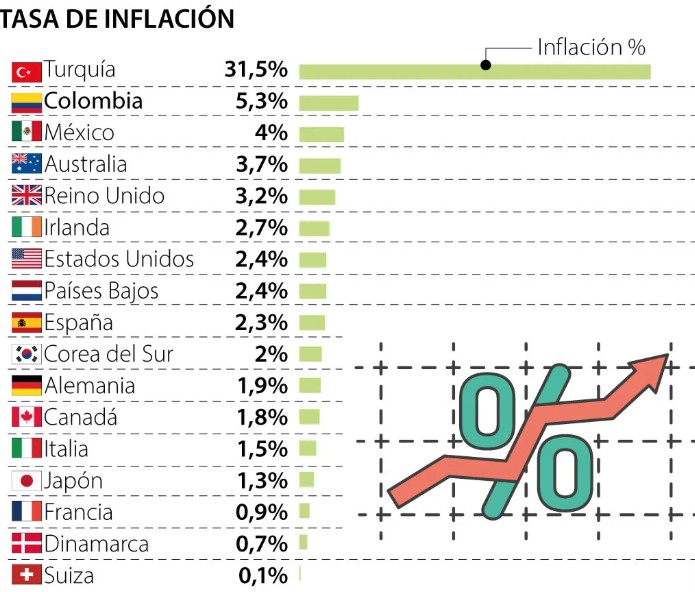El país ocupó el segundo lugar entre las economías listadas, solo superado por Turquía, que reportó una inflación de 31,5%
