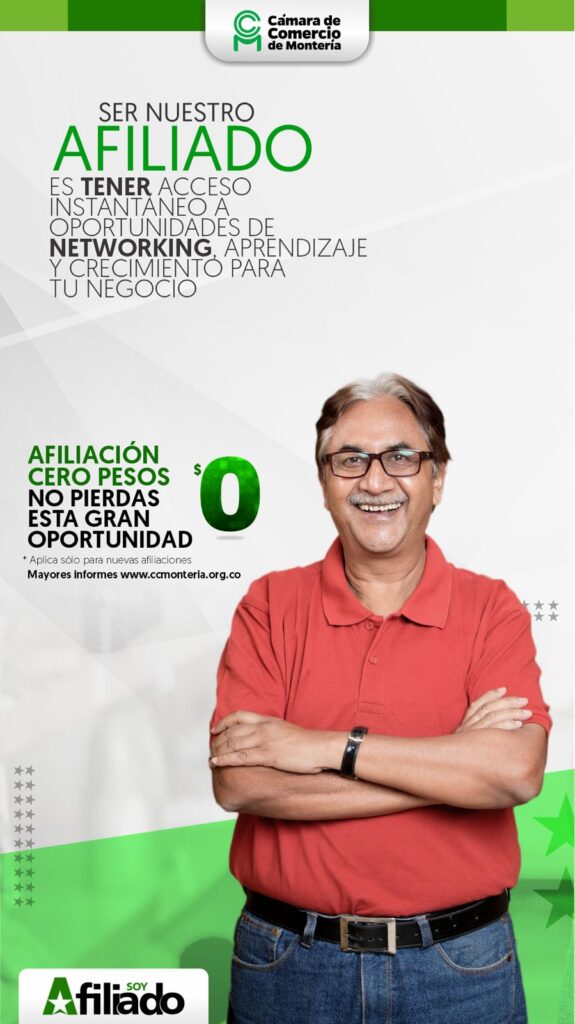 Al afiliarte a la Cámara de Comercio de Montería, accedes a un exclusivo club de networking, ampliando tu círculo de influencia y oportunidades de negocio. 💼🌐 Descubre el poder de la afiliación. ¡Afíliate hoy y expande tu red empresarial! 🌟👥