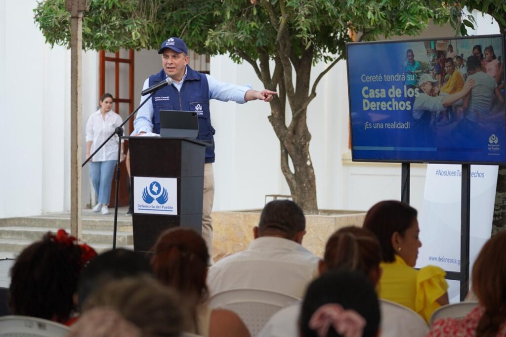 Cereté (Córdoba), 21 de febrero de 2024 (@DefensoriaCol). Desde el municipio de Cereté, Córdoba, el Defensor del Pueblo, Carlos Camargo Assis, dio a conocer toda la oferta institucional de la Casa de los Derechos a la que pueden acceder las comunidades de esa y otras poblaciones circundantes que conforman el área metropolitana del departamento.