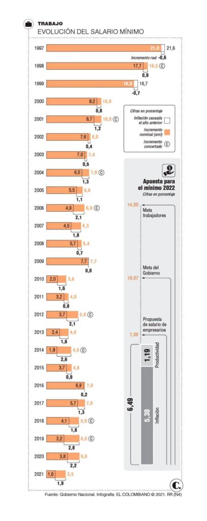 Allí los empresarios adoptaron la propuesta del Ejecutivo, no sin antes sentar posición sobre los efectos inflacionarios que tendría el incremento; sin embargo, le pidieron que mantuviera el Programa de Apoyo al Empleo Formal (Paef), que ha subsidiado la nómina en medio de toda esta crisis. Un gana gana que le permitiría a Duque cumplir con su promesa antes de entregar el poder.