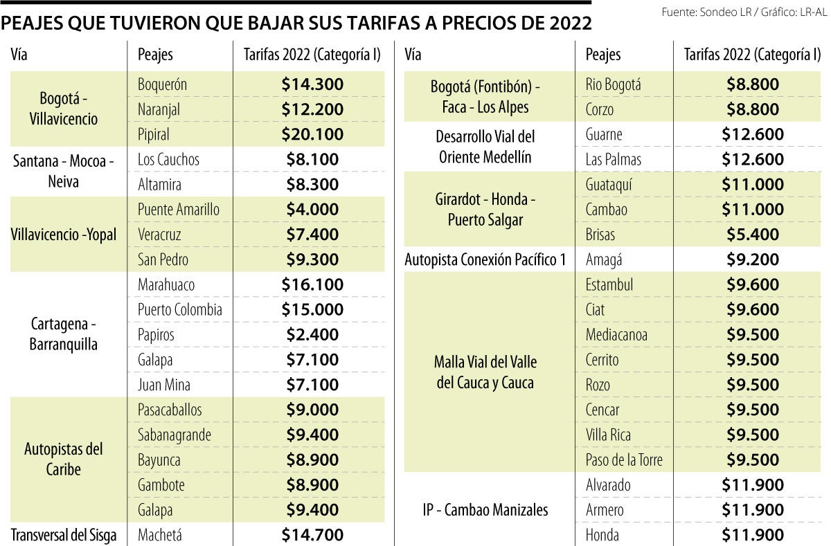 En total son 143 peajes nacionales que están a cargo del Instituto Nacional de Vías (Invias) y de la Agencia Nacional de Infraestructura (ANI), los que tendrán que mantener las tarifas del año pasado o podrían enfrentarse a sanciones de la Superintendencia de Transporte.