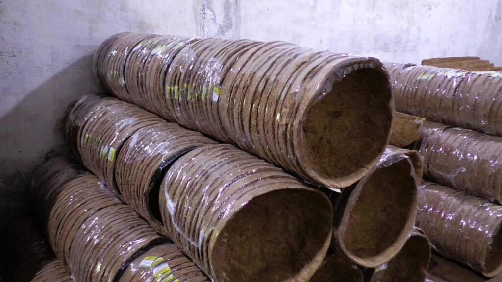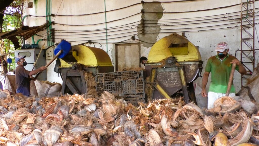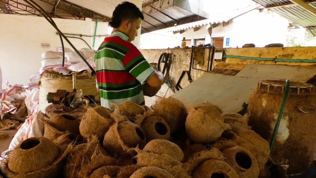 “Nosotros transformamos la basura orgánica del coco, o sea el capacho en el que viene naturalmente, luego de ser sacada la fruta ese capacho nosotros los recogemos en las fincas y lo traemos acá, le hacemos un proceso para extraerle el sustrato, o sea el suelo que nos sirve para cultivos y las fibras naturales que deja ese material, con esas fibras naturales se ayuda hacer biomantos, artesanías, y se hacen infinidades de cosas como tapizados para vehículos e inclusive colchones”, dijo Carlos Alberto García Restrepo, propietario de Fibras y Sustrato del Caribe