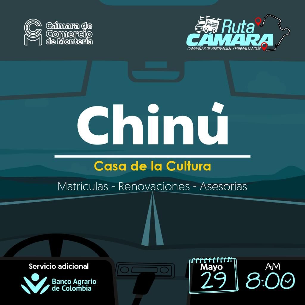 Este lunes 29 de mayo llega Ruta Cámara al municipio de Chinú.