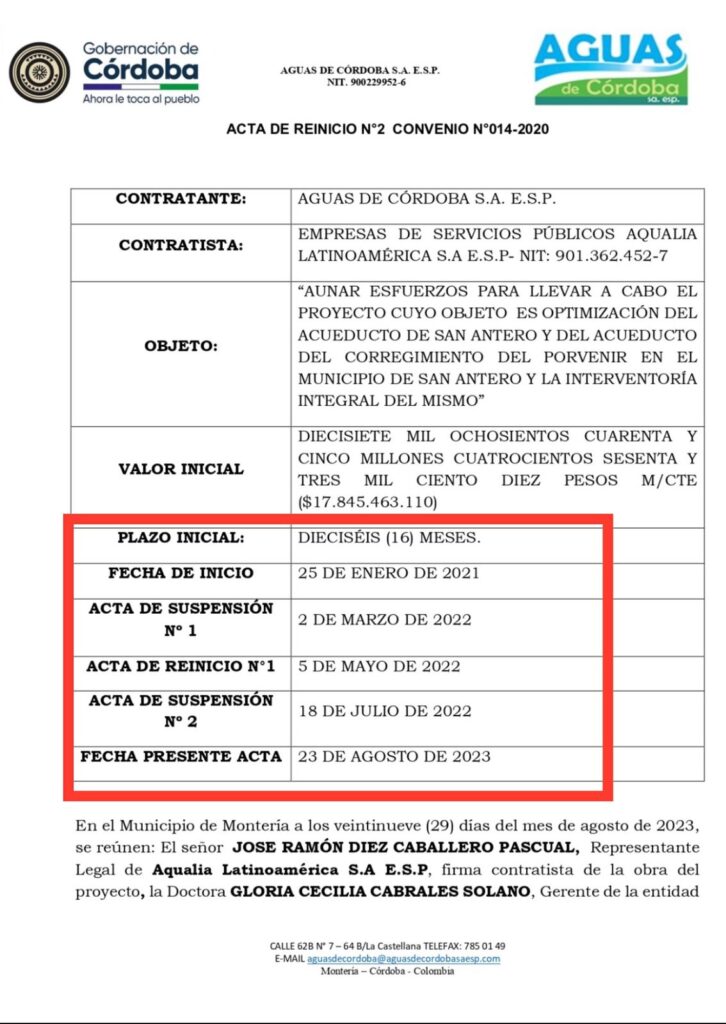NOTA: Doctor Maruen que pasa con los contratos de los acueductos de San Antero y El Porvenir ?