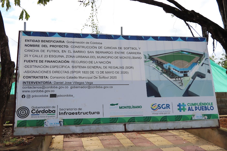 Con Código BPIN 2019234660040: Construcción de cancha de softbol y cancha de fútbol en el barrio San Bernardo entre carrera 25 y calle 23 esquina, zona urbana del municipio de Montelíbano con valor aprobado por el OCAD $3.002.022.055.