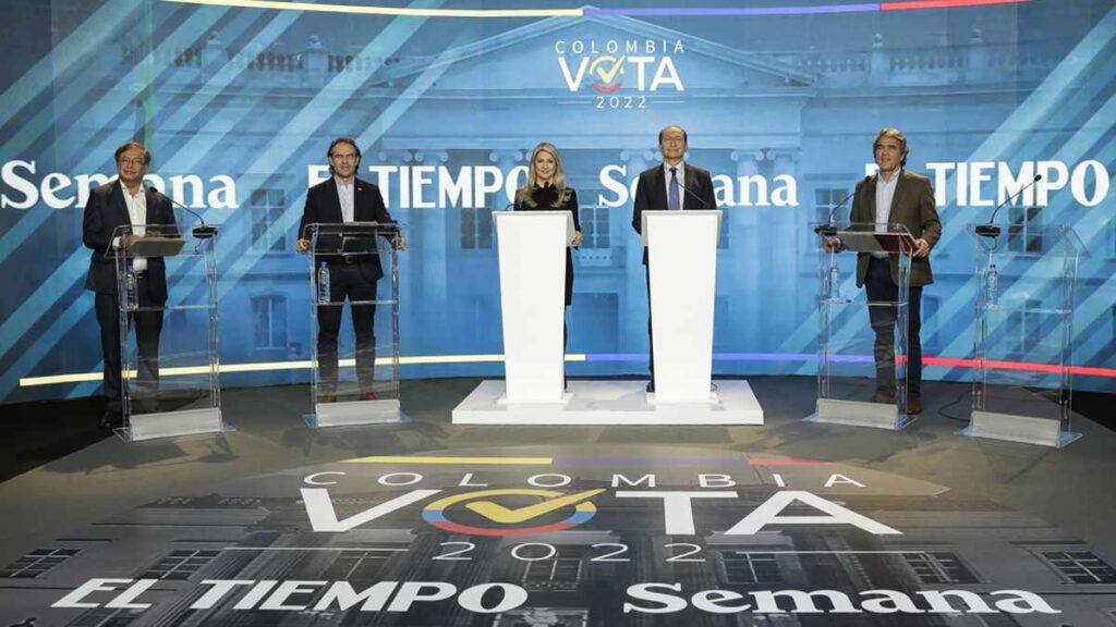 Federico Gutiérrez, Gustavo Petro y Sergio Fajardo protagonizaron en la noche del lunes el debate definitivo de candidatos presidenciales de cara a la primera vuelta que se hará el domingo 29 de mayo, en la alianza digital de SEMANA y El Tiempo. El gran ausente fue Rodolfo Hernández, quien a pesar de haber confirmado hasta último momento su presencia, canceló su participación en este cara a cara que servirá a los colombianos para que tomen una decisión en las urnas.