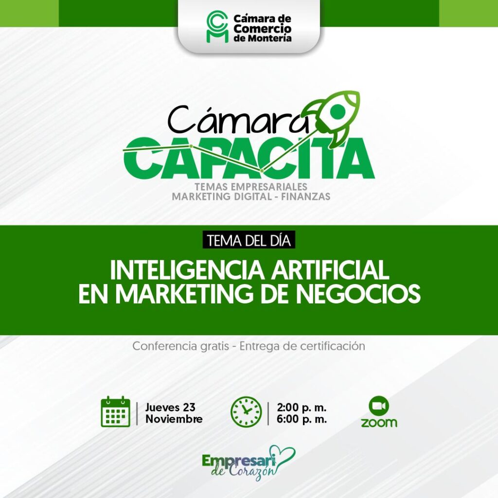 Link Cámara Capacita: https://ccmonteria.org.co/promocion/eventos/camara-capacita-inteligencia-artificial-en-marketing-de-negocios?inscribe=true