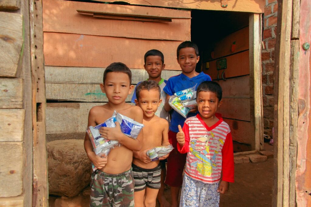 Lafaurie Rivera indicó que “los menores son los que más sufren los estragos de cualquier fenómeno natural y durante las entregas de leche queremos que, por algunas horas, olviden las dificultades por las que están pasando, que tengan tiempo de recreación con la Vaca Ana, pintucaritas y humor”.