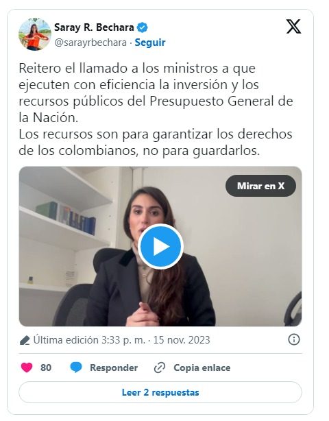 “¿Qué es lo que está pasando con la ejecución? ¿Qué pasa con los Ministerios? ¿Acaso los impuestos no son para las personas más vulnerables? Les exijo que tengan responsabilidad y manejen con eficiencia los recursos y más porque la proyección de crecimiento del país está estimada en máximo 1,2%, según lo ha definido el Banco de la República”, dijo.