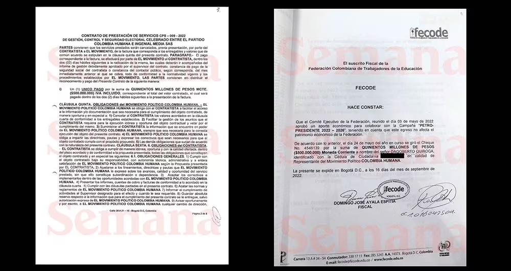 El asunto, tal como lo ha revelado SEMANA, tiene que ver con la forma como desde Fecode entregaron 500 millones de pesos a la campaña Petro. Pero al estar prohibido este tipo de aportes decidieron enviarlos en primera instancia a la Colombia Humana y desde ahí a las arcas de la campaña.