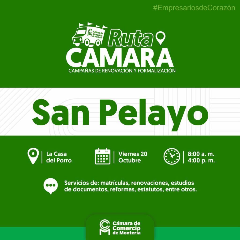 Ruta Cámara llega al municipio de San Pelayo este viernes 20 de octubre.